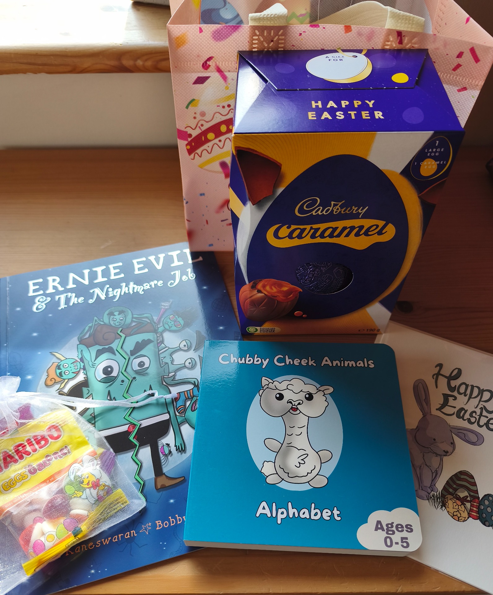 Bundle also includes 1 large Easter egg, an Easter gift, an Easter card illustrated by Bobby, and Haribo Easter jellies